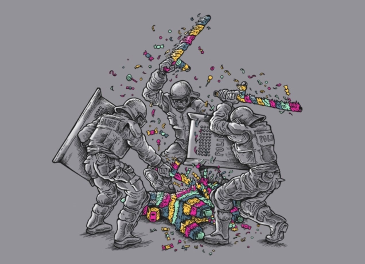 Let’s start with the question regarding the democratic side of the modern state and the place of police institutions. If we base the idea of modern democracies to Rousseau’s ‘social contract’, which is the view that citizens’ moral and political obligations are dependent upon an agreement among them to form the society in which they live, then we would have to assume that modern state institutions are a part of the public’s general will and that the actions of such institutions are for the people, not against their collective will (let’s leave aside the weakness of the notion for now). On the other hand, when the public protests against the state policies, the first obstacle they face is the police force, who are legally able to exert power using weaponry (chemical at times). In such scenarios, the police force is used as a means to silence the public will and guarantee its own power. In fact, it is via the police force in which the state physically presents itself to the public and polarizes itself against the citizens, instead of co-operating with the people, who should, theoretically, be the ones forming the general will and who are the reason for the existence of the state.
